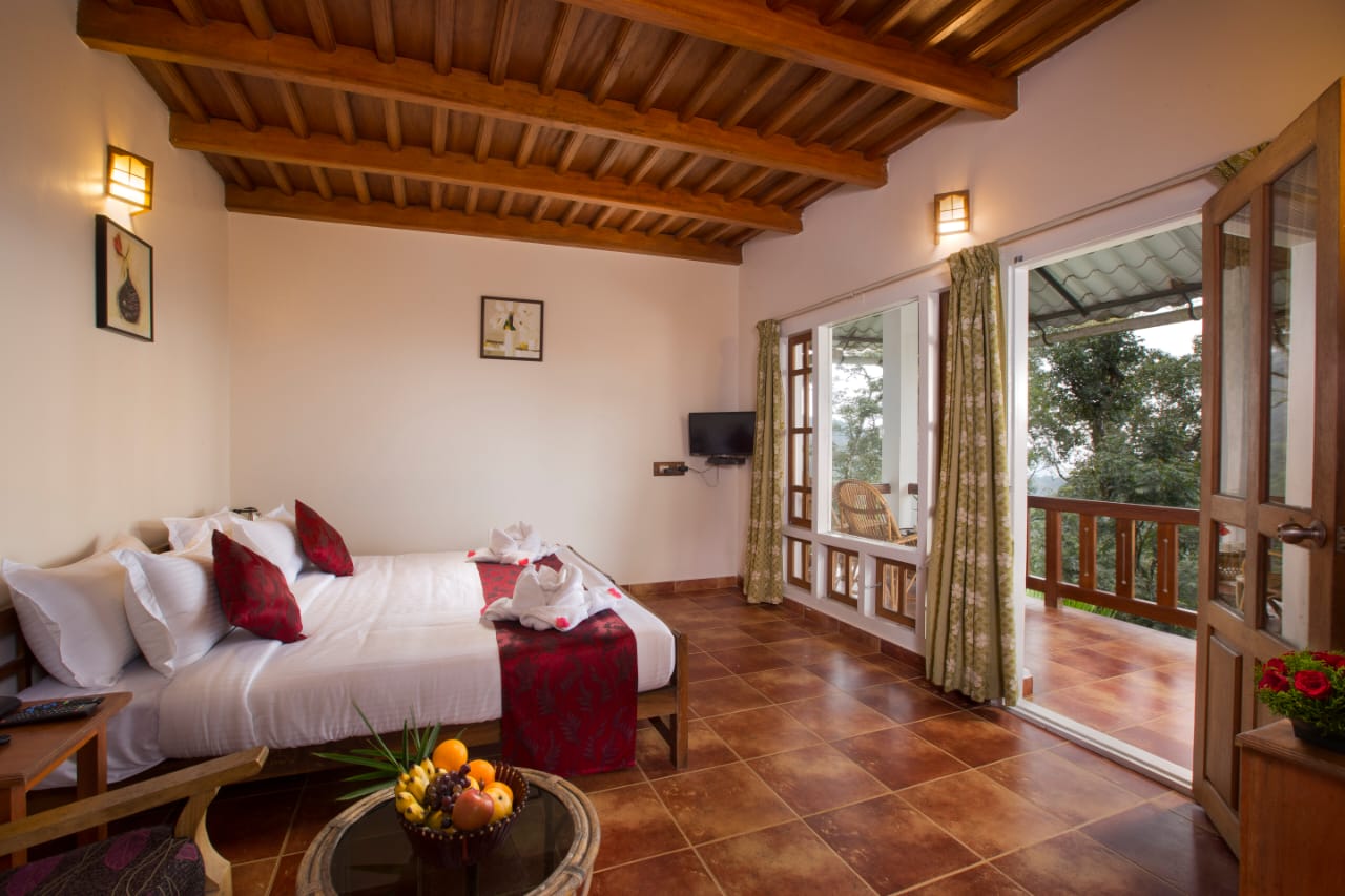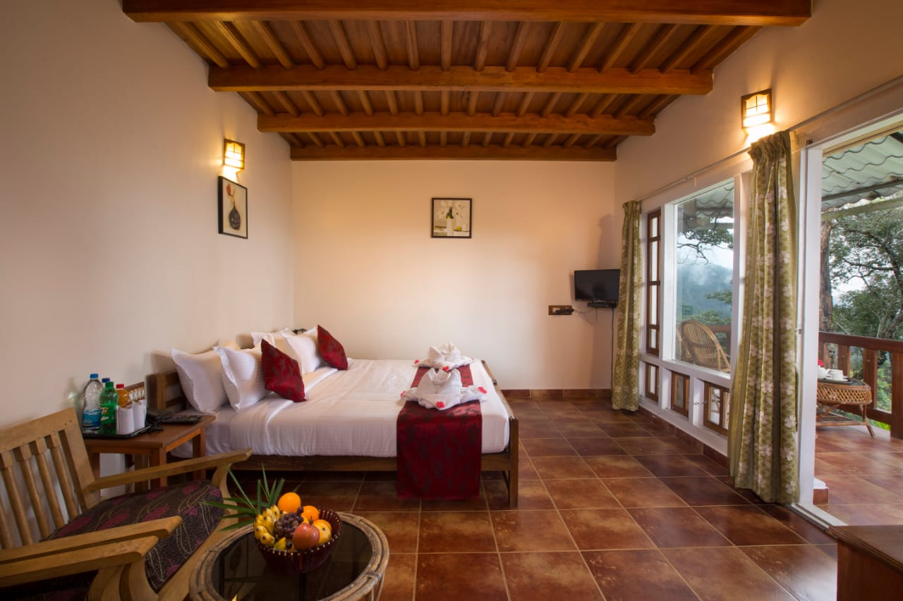 - The Superior Cardamom Room with Balcony has private balconies that overlook outstanding and picturesque mountain and valley views. The adjacent restrooms include 24-hour hot and cold water, power backup, writing tables, table and chairs, an intercom and a TV.