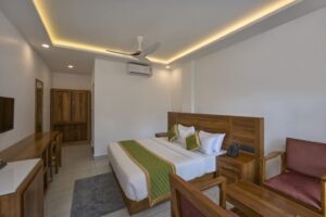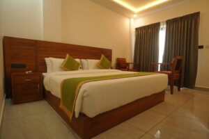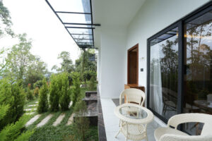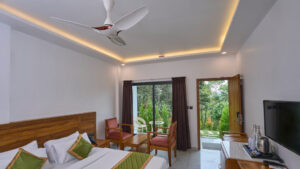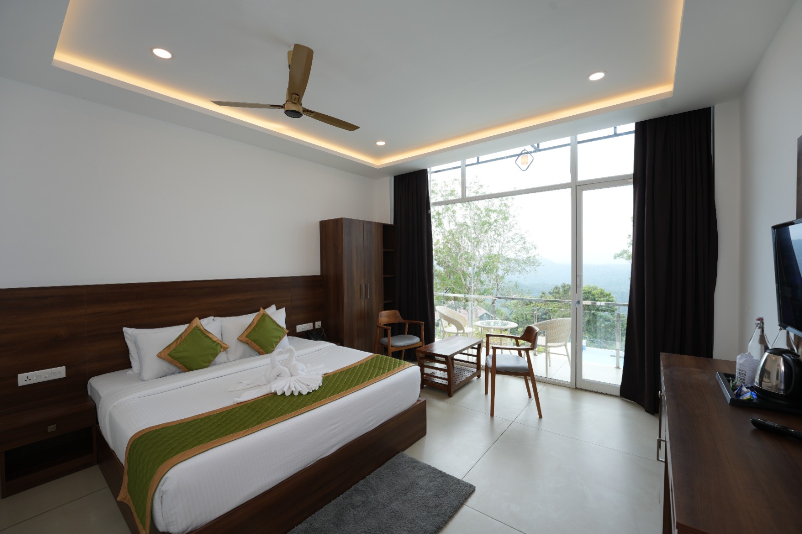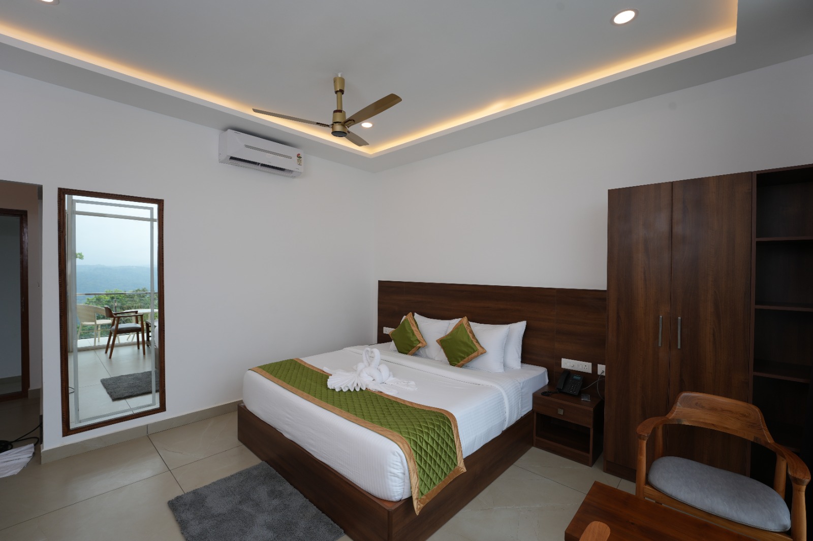 The Mount Courtyard Rooms at ZeezMount offer the perfect blend of privacy and comfort. Spread across 350 sq. ft., these rooms feature a private open courtyard, modern interiors and a plush king-size bed. Ideal for those seeking a slow living resort in India, the room includes air conditioning, flat-screen TV, tea and coffee kettle and a cozy ambiance perfect for anyone looking for a comfortable escape within a luxury misty area resort in Munnar. These rooms offer an unmatched level of calm, making them the preferred choice for wellness retreats in the Western Ghats
